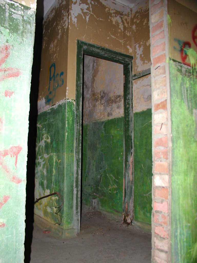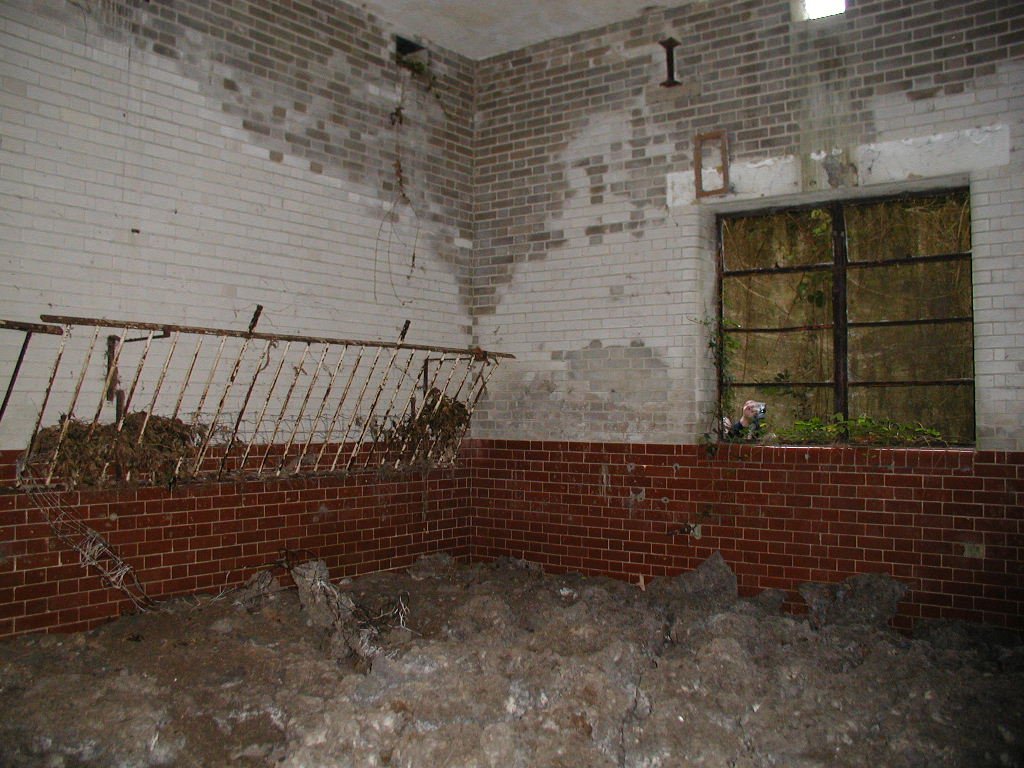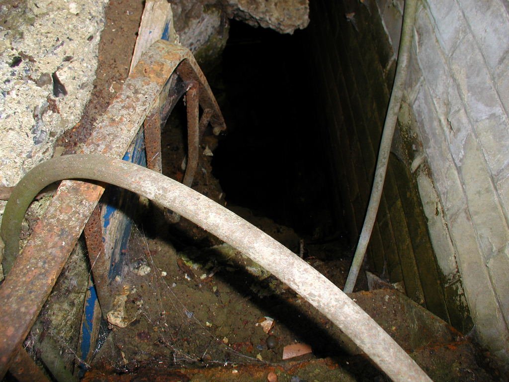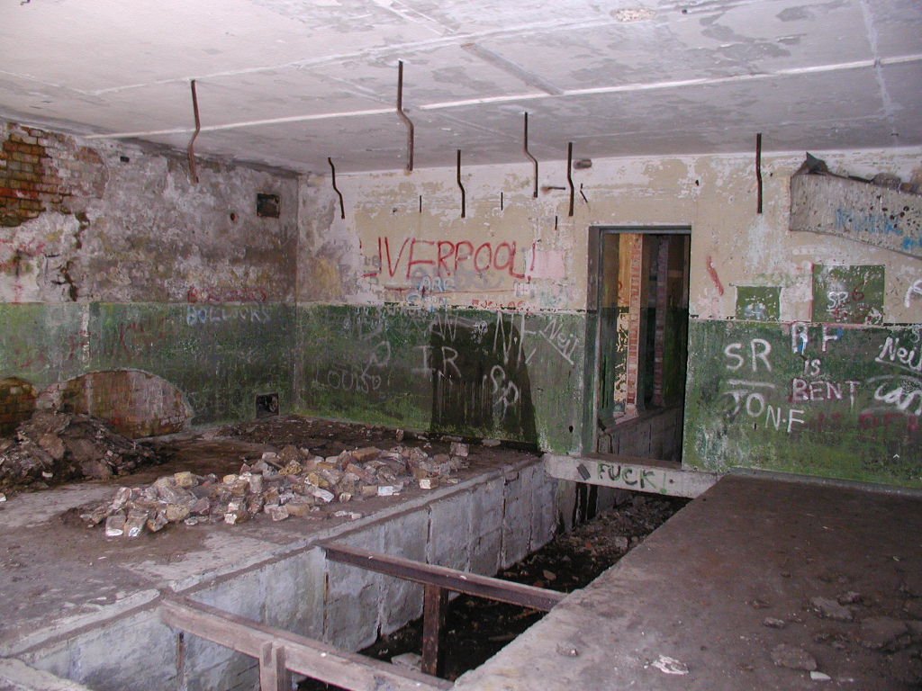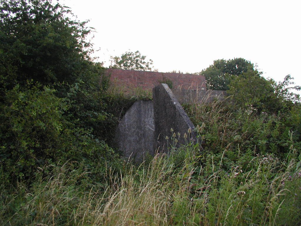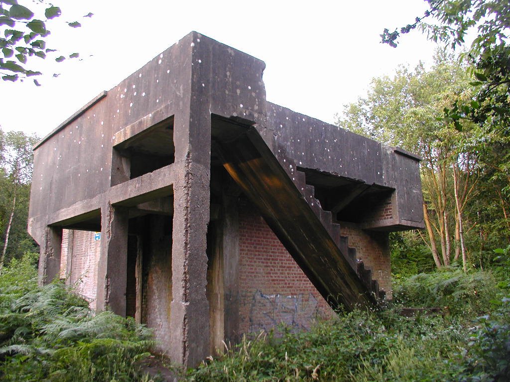 Defence of the site included an Ack Ack tower that housed a 40mm Bofors gun as well as a tripod-mounted Lewis gun. Near to this structure, the remains of the concrete supports for the receiving towers can still be seen. However, the most noticeable feature is the main control block. The blast walls around the building have soil banked up against them. The entrance into the block would have been a gas proof door. It was heavily barred and when closed, a thin rubber gasket fitted into the frame would have made it a gas tight seal. The first room you enter is the largest and would have been the main operations room. A large trench-like pit runs through the building. Looking through the doorway on the other side of the room, there is a small room immediately to the right. This was the air lock, and next door was the anti-gas filter room. A large frame is still in place on the wall, and would have supported the filtering mechanisms. A large metal pipe comes into this room, and the same room seen from outside will show you the air intake. Opposite these rooms were the controllers office and the toilet. The kitchen and pantry are the rooms that form the other end of the block.