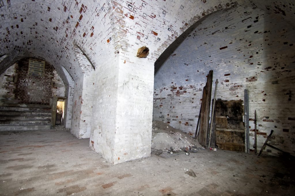 Hudson’s and Horseshoe Bastions are on the eastern side of the castle. They are both reached via brick lined tunnels and the ditch between them is protected by means of musketry caponiers. The approach to Hudson’s was changed in the 1850’s by the construction of another caponier as artillery continued to develop and change.