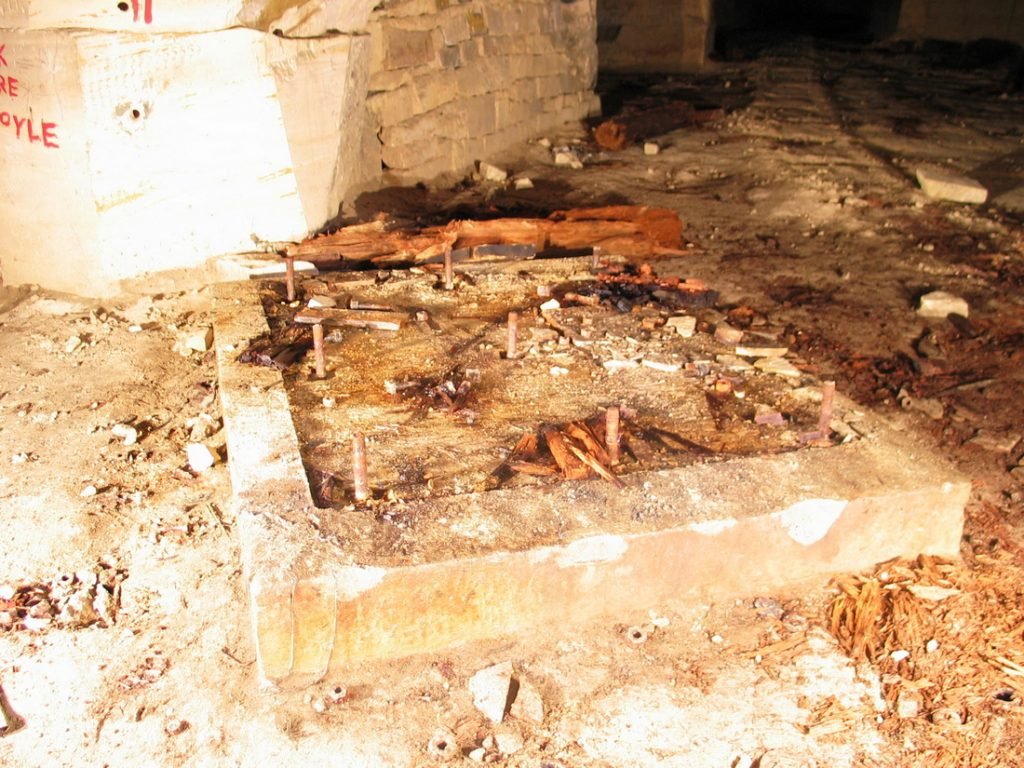 There were very few surface features buildings at Ridge Quarry; the only substantial one left standing is a loading bay. The other buildings were wooden and were used as housing for military police personnel.