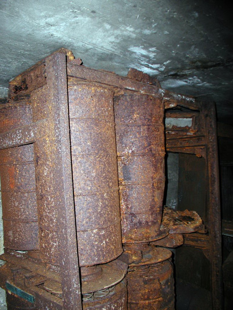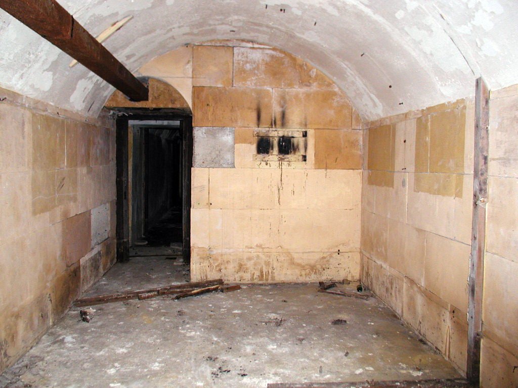 This bunker complex has two entrances, which are both now sealed. Most of the complex is in pretty good condition. It consists of various-sized rooms, and it is clear to see that this complex was more than just an air raid shelter. Wooden frames show partitioned areas within rooms, and there is a large area, above the main bunker, that was used to filter air taken into the complex.