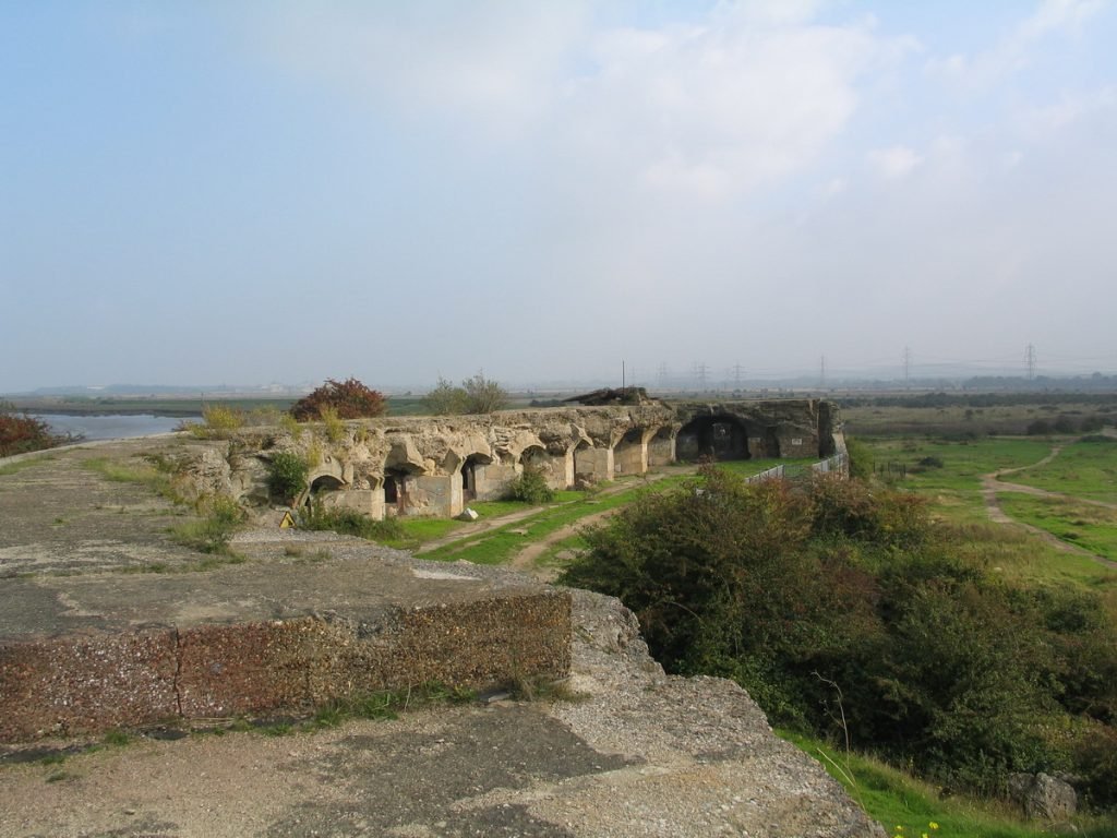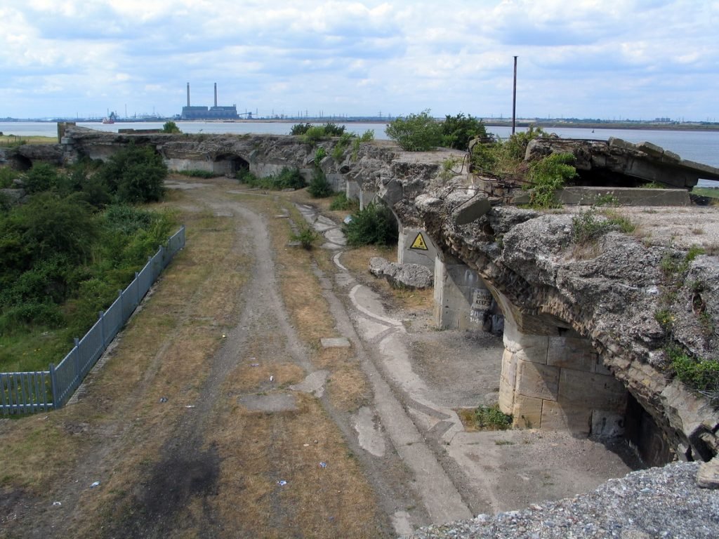 The new fort was in the shape of a D, with the curved area being for gun placements and casemates, and behind that were barracks and admin buildings. The same problems with the marshy ground again caused major problems for the fort. In spite of superficial strengthening work being carried out on the magazines, it was decided by 1904 that Shornemead Fort could not possibly prove effective and withstand an attack that it was felt she would face, and the fort was disarmed. No further work took place around the fort until two 5.5inch guns were put in place during WWII; these were quickly decommissioned at the end of the war.  During the 1950s, the Army School of Demolition destroyed the barracks.